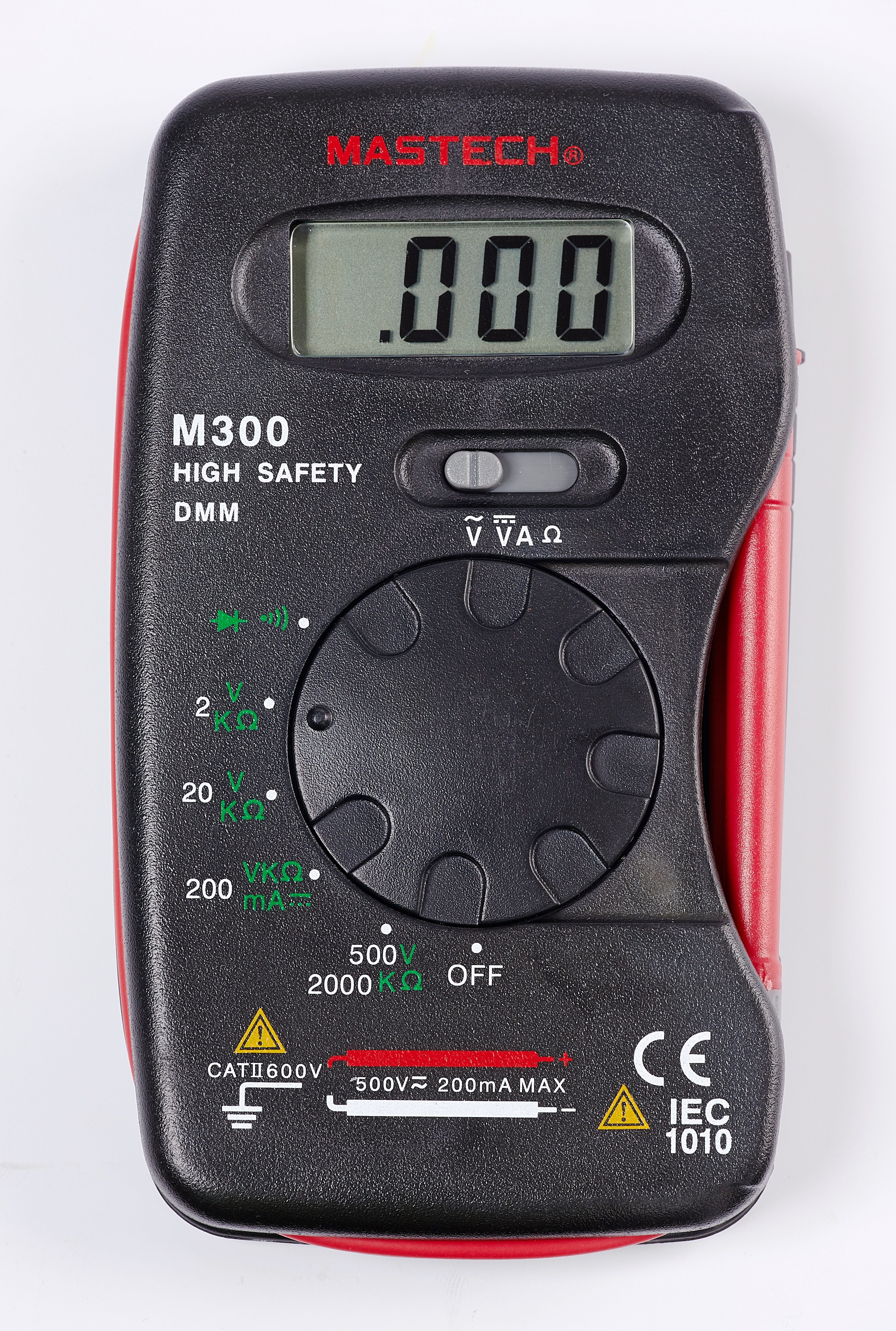 Цифровой мультиметр Mastech M300 имеет ручной переключатель выбора пределов измерений, в нем отсутствует возможность измерения силы переменного тока, отсутствует память результата измерений. Прибор имеет ЖК-дисплей с разрядностью 3 1/2 (максимальное индицируемое число 1999).