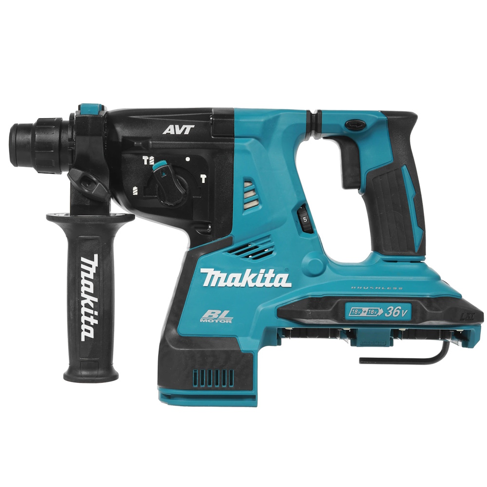 Оборудование Makita DHR282ZJ дополняется антивибрационной системой, функцией реверса и удобной электронной регулировкой скорости. Прибор уверенно справляется с долблением и сверлением, а также может использоваться в комбинированном режиме. Система оснащена креплением SDS-Plus.