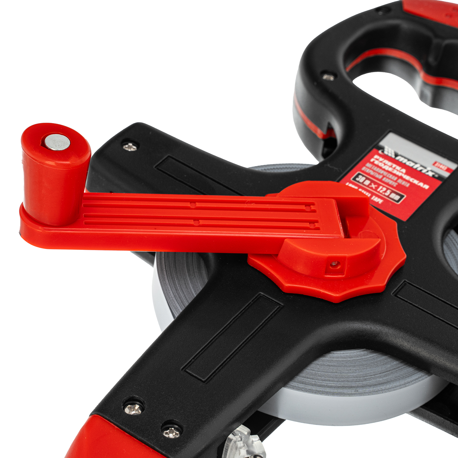 Удобная эксплуатация — сматывающий механизм с ручкой облегчает возврат измерительного полотна в корпус.