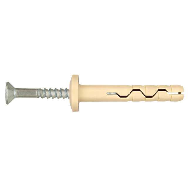 Грибовидный бортик дюбеля обеспечивает лучшую фиксацию материала за счет большой прижимной плоскости.