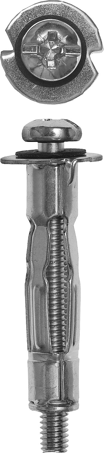 Для крепления различных конструкций к пустотелым стеновым панелям, гипсокартону, ДСП, гипсоволоконным листам (ГВЛ), потолочным покрытиям с пустотами. Анкер устанавливается в предварительно просверленное и очищенное от буровой муки отверстие.