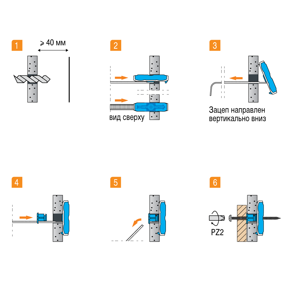 Применяется для крепления навесных шкафов, полок, кронштейнов для телевизора, внутренних блоков кондиционеров, карнизов, направляющих для модульных гардеробных, монтажных планок.