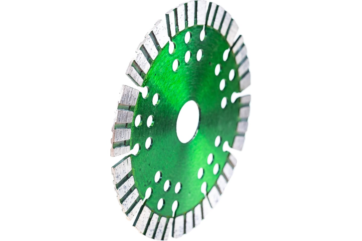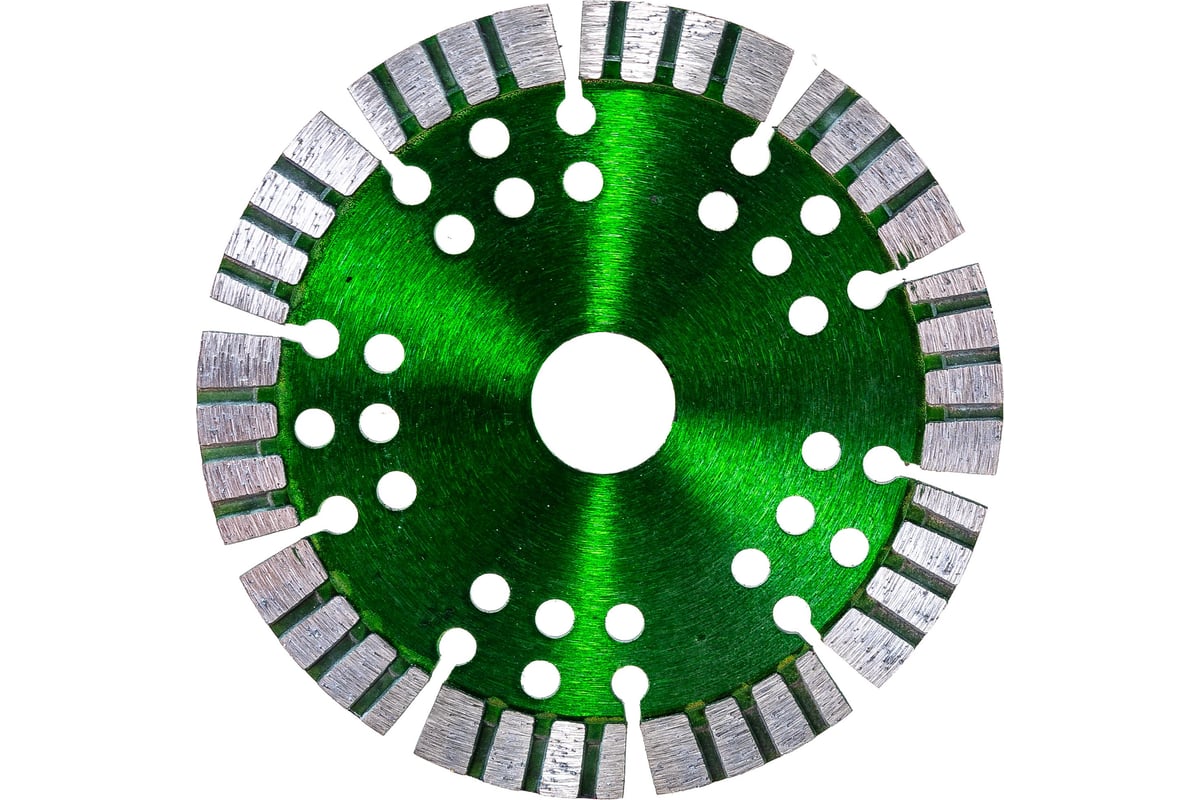 Особенности: рифлёные сегменты режущей кромки обеспечивают высокую скорость реза, перфорация корпуса способствует дополнительному охлаждению диска.