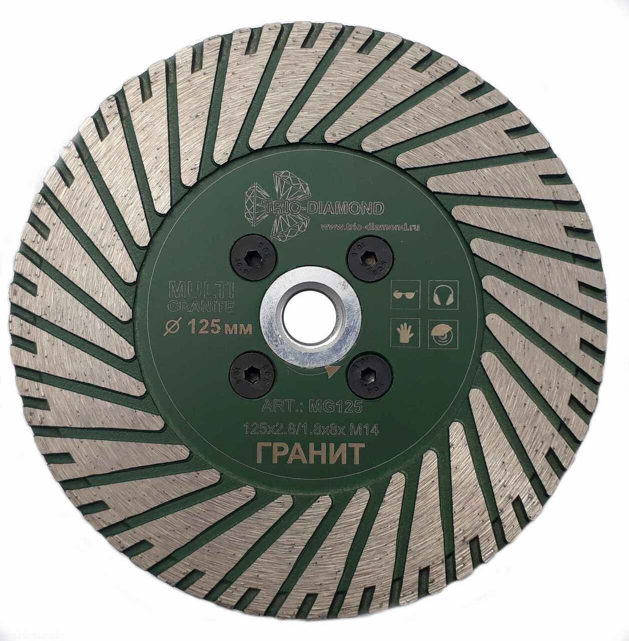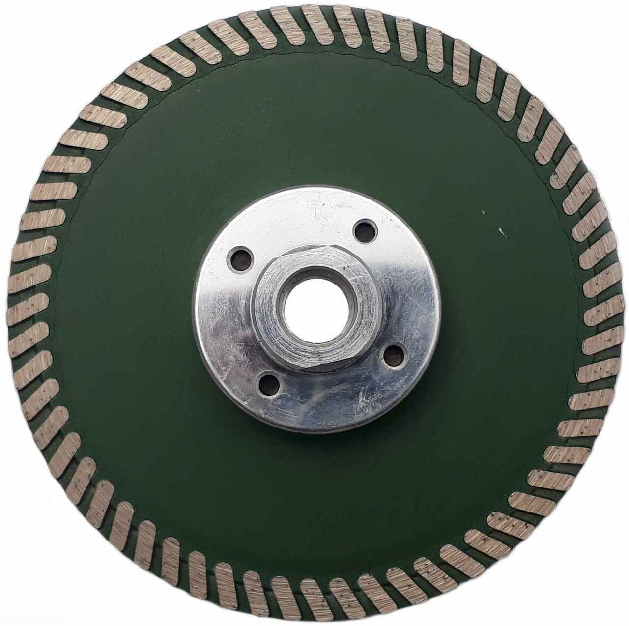 Особенности: Универсальные диски для работы с натуральным камнем. За счет увеличенной площади рабочей поверхности позволяют выполнять широкий спектр работ по резке, шлифовке и снятию фасок. Фланец М-14 позволяет устанавливать данный диск на УШМ без зажимной гайки.