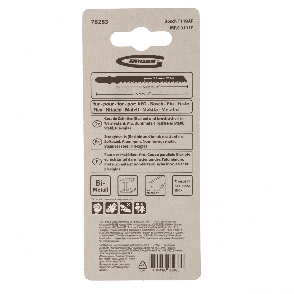 Биметаллические полотна обладают высокой режущей способностью и твердостью, легко выдерживают интенсивное использование.