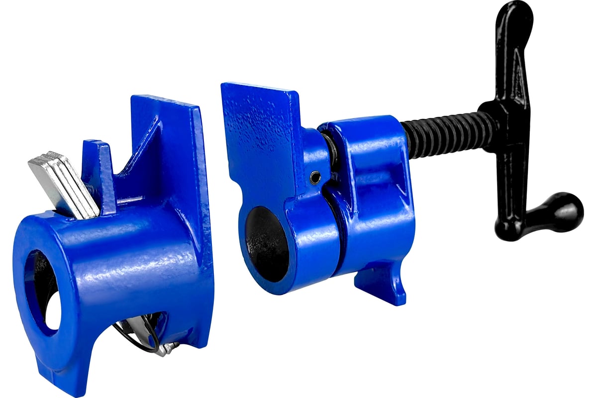 Принцип работы такой же, как и у F-образной и быстрозажимной струбцины. Разница в том, что у трубной нет стержня. Это сделано для увеличения спектра применения инструмента.