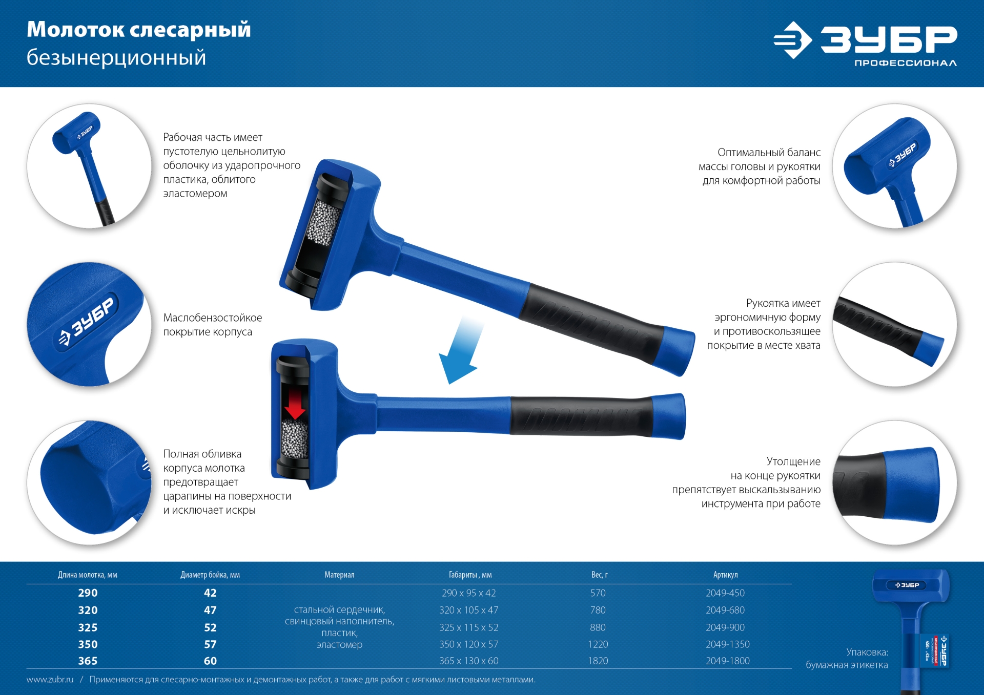 Полная обливка корпуса молотка предотвращает царапины на поверхности и исключает искры.