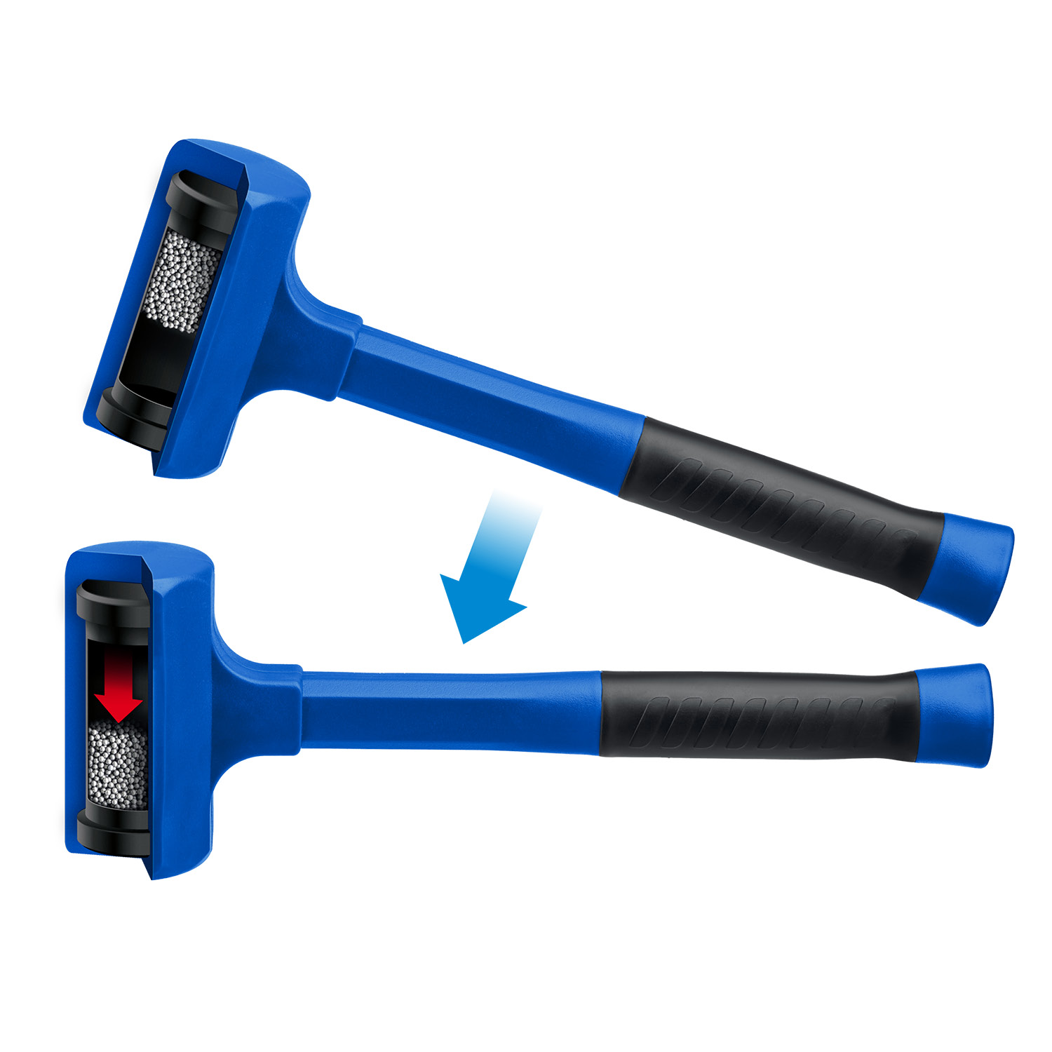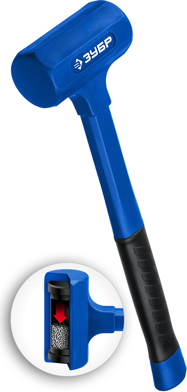 Рабочая часть кувалды имеет пустотелую цельнолитую оболочку из ударопрочного пластика, облитого эластомером,