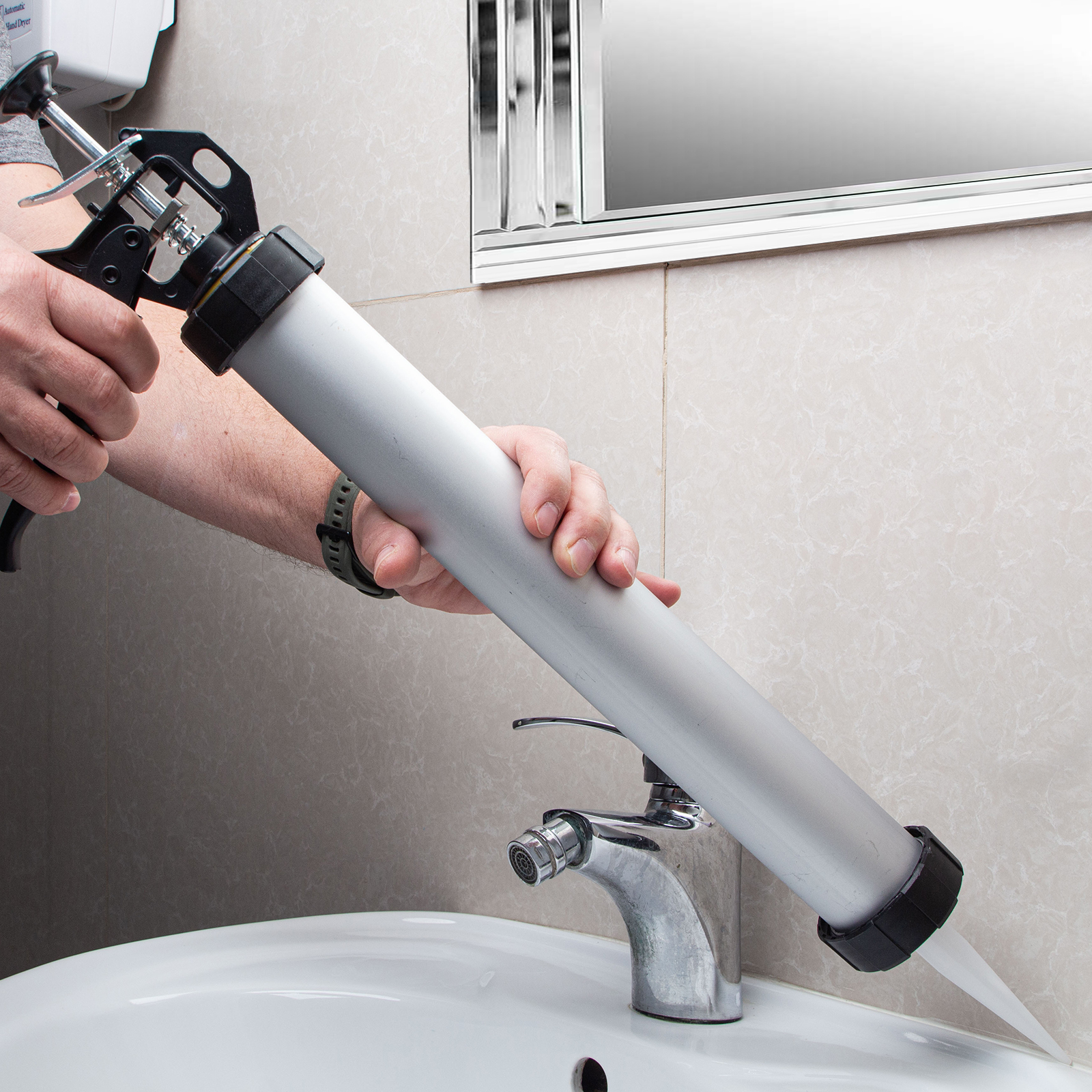 Быстрая подготовка к работе — установка картриджа и заправка герметика не занимает много времени.