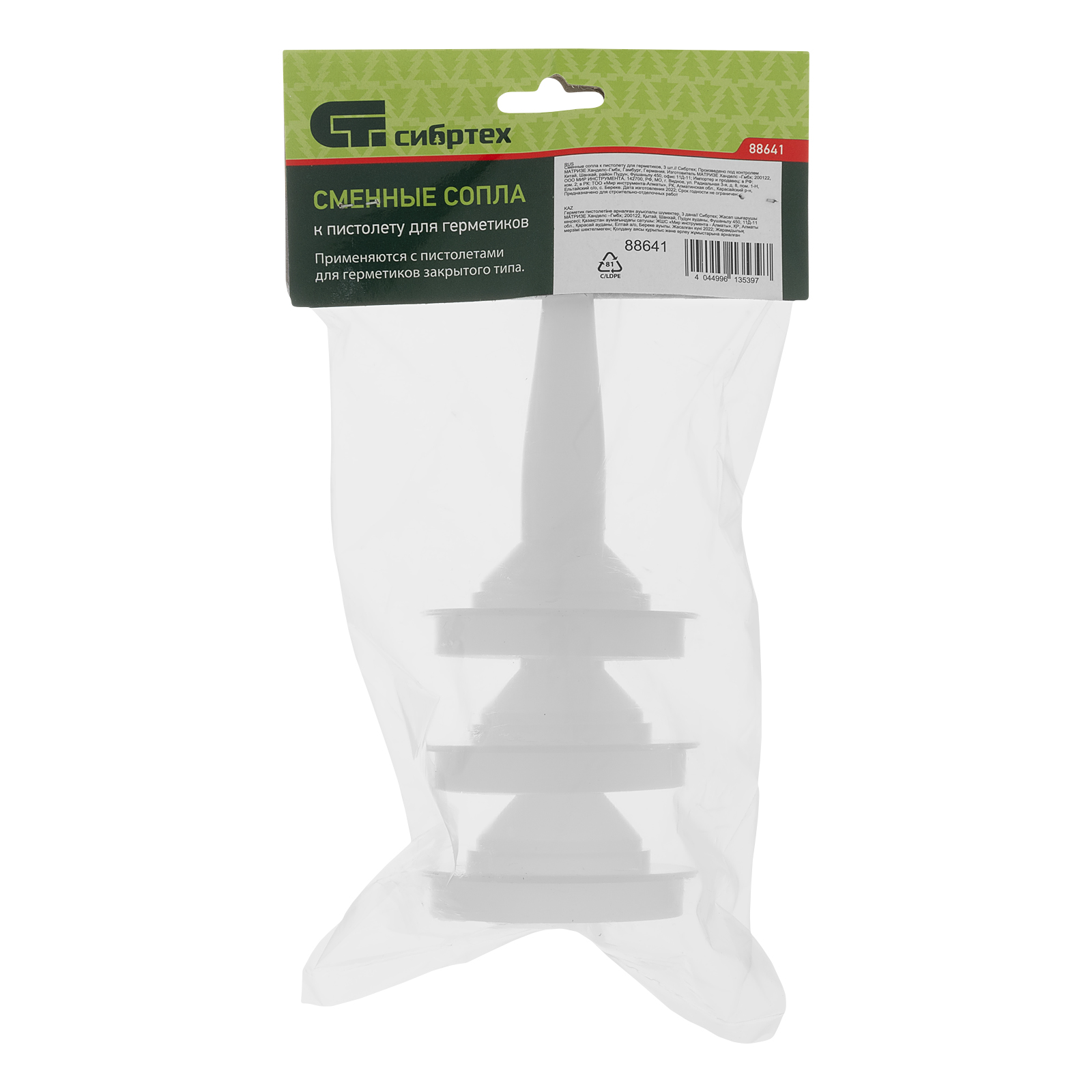 Продуманная комплектация — в упаковке 3 сопла, которые можно использовать для герметизации швов разной ширины или оставить про запас.