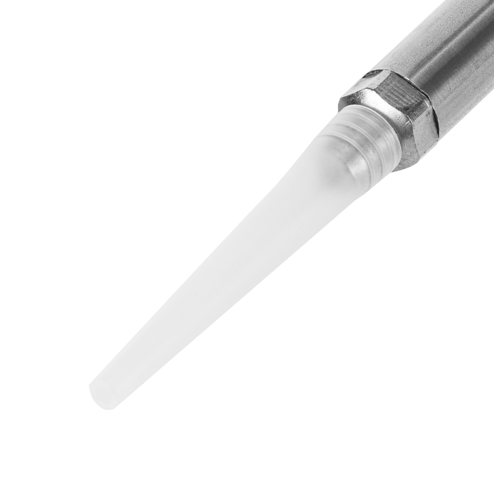 Дополнительные возможности — пистолет поставляется с 4 пластиковыми насадками, облегчающими работу в труднодоступных местах.