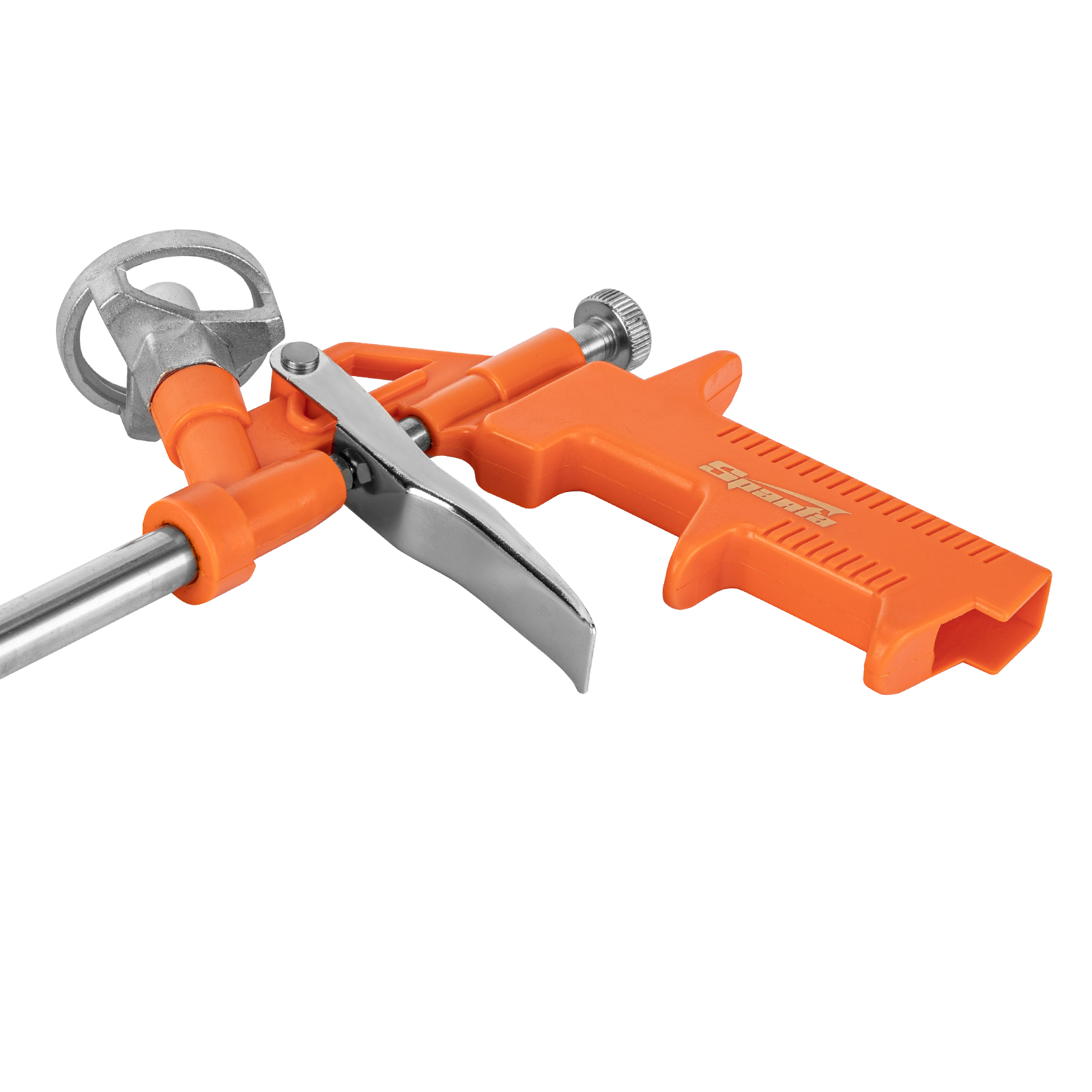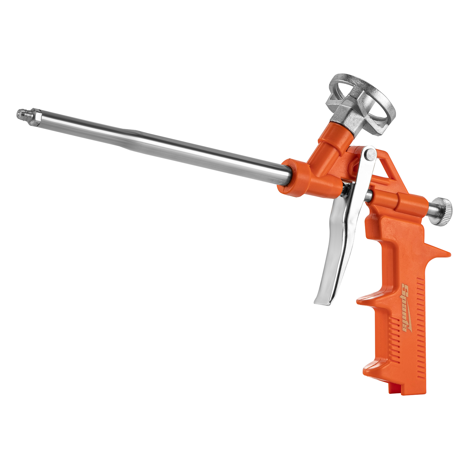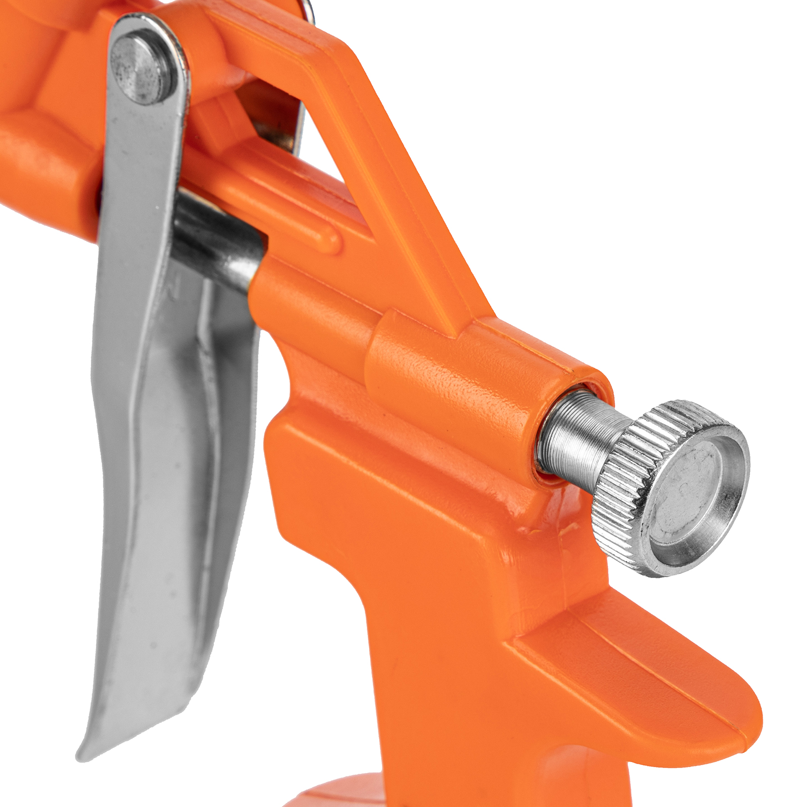 Плавное дозирование смеси — пистолет оснащен регулировочным винтом трещоточного типа.