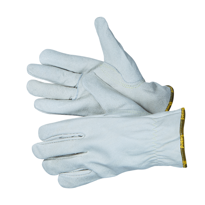 Основа перчатки изготовлена из высококачественной воловей кожи серого цвета. Мягкая и прочная кожаная перчатка не стесняет движений и комфортно облегает руку из-за её анатомической формы.
