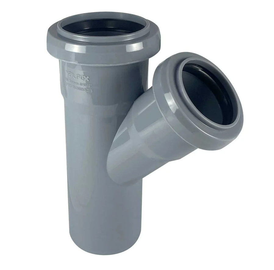 Тройник VALFEX 45 градусов, 50-40, внутренняя канализация 22050040 предназначен для разветвления трубопроводов под углом в системах внутренней канализации.
