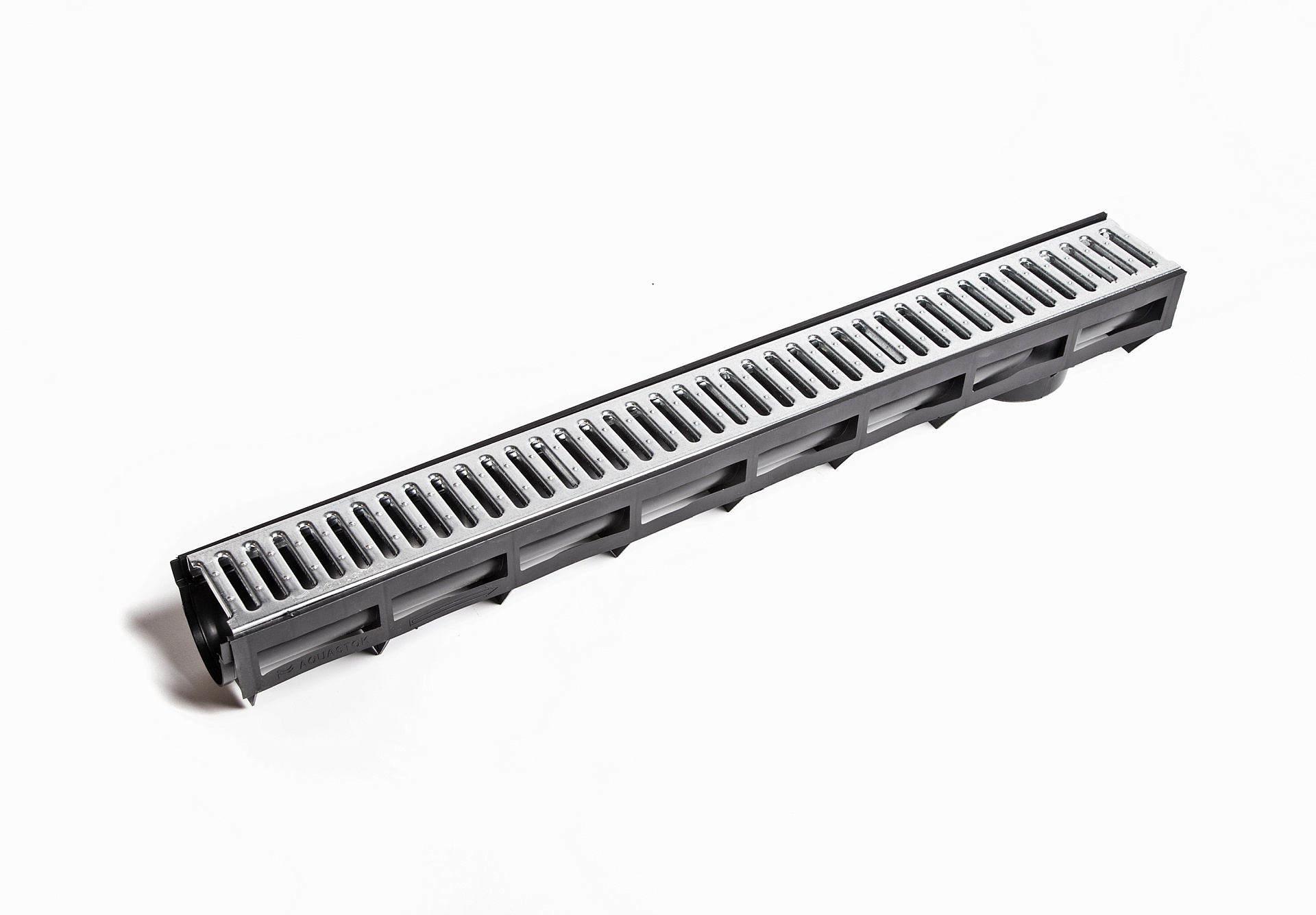 Он поставляется со стальной оцинкованной решёткой, и не требует дополнительных креплений, обеспечивая надежность и удобство использования. Все необходимые элементы уже включены в комплект, что избавляет ВАС от необходимости подбора дополнительных комплектующих. Комплект включает в себя ВСЁ, что нужно Вам, для создания идеальной водоотводной системы на вашей территории: