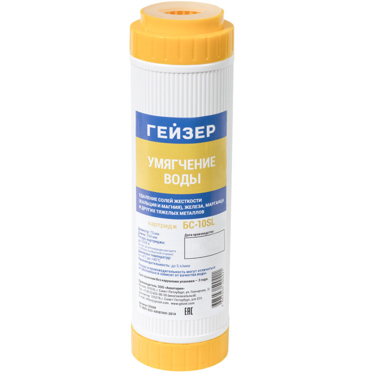 Общий ресурс (при жесткости воды до 5 мг-экв/л): до 3500 л