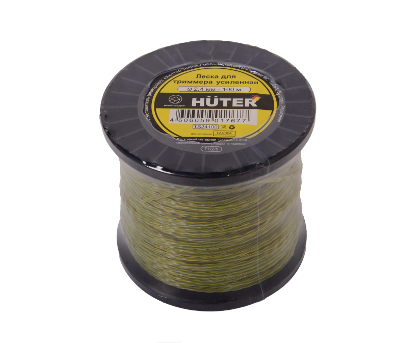 Леска Huter TS24100 с сечение в форме витого квадрата, диаметр 2,4 мм, длина 100 м. Подходит для триммеров: