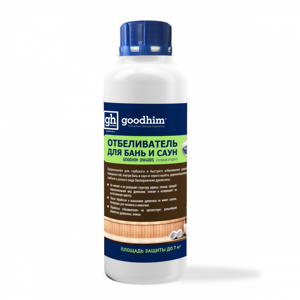 Представляет собой водный раствор, предназначенный для глубокого и быстрого отбеливания деревянных поверхностей, внутри бань и саун от серого налёта, деревоокрашивающих грибков и разного вида биопоражения древесины.