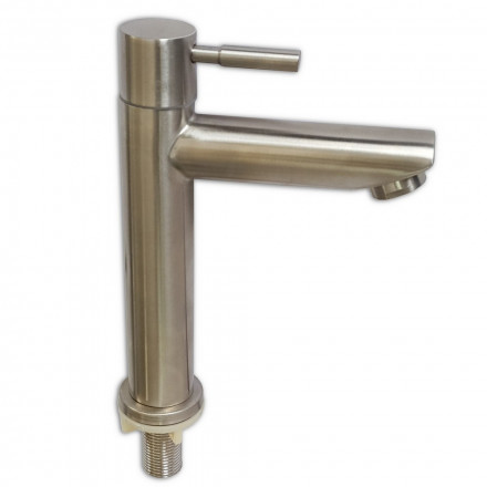 Смеситель на одну воду из нержавеющей стали марки 304. Способ подачи воды - шаровый. Крепление на гайке.